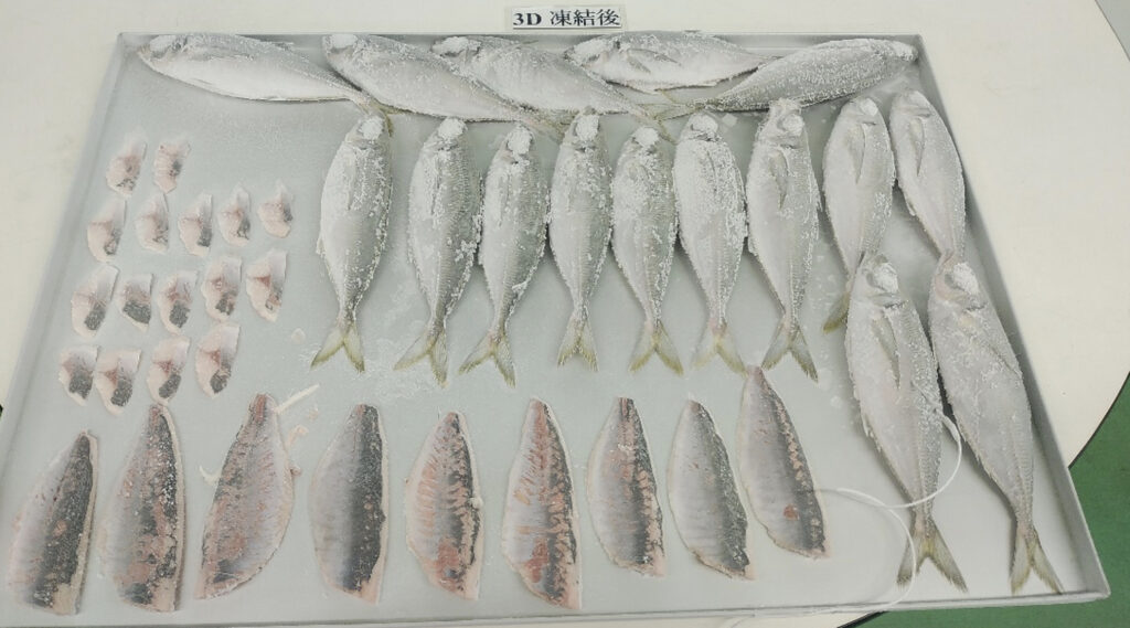 アジフライなどの加工用はもちろん、付加価値の高い「生食グレード」の冷凍商品開発をお考えの皆様。 「冷凍の青魚は美味しくない」というイメージを、3Dフリーザーで一緒に覆しませんか?