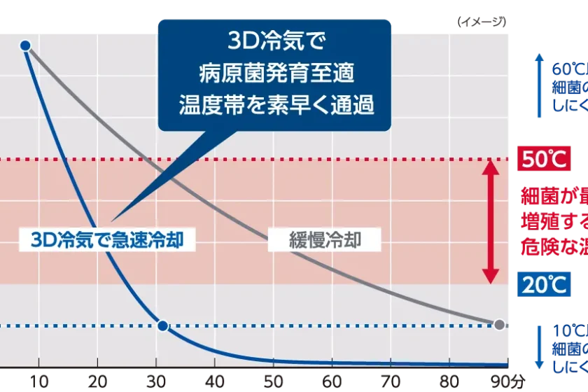 乾燥を避けたい、揚げ物をカリッと保ちたい、ムラを減らしたいなら、3Dフリーザーが最有力です。