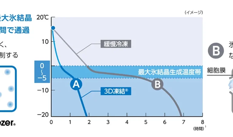 詳しくは 「通常冷凍と急速冷凍の違い」 を参照。