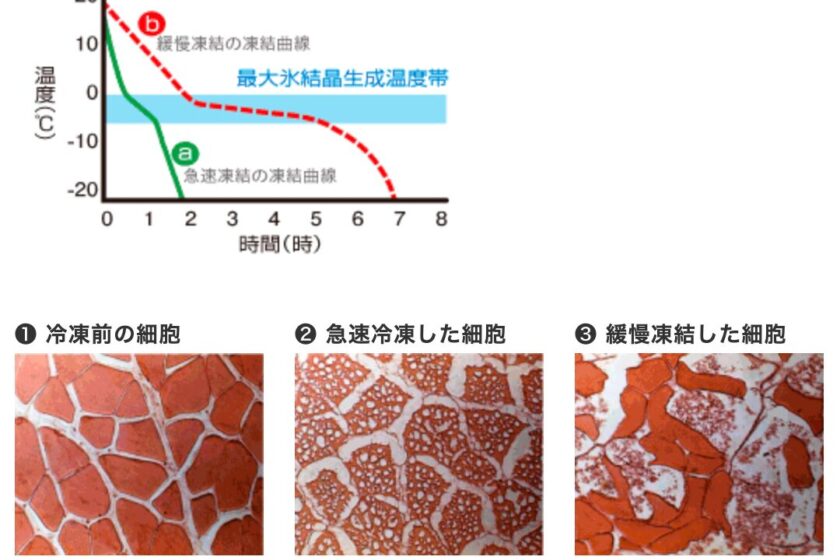 | 氷結晶サイズ | 大きくなりがち | 微細(細胞破壊が少ない) |