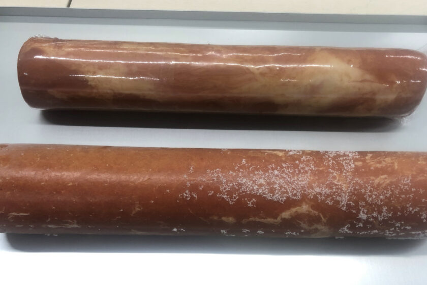 - ブロック径:太いプレスハムか、不定形のバラ肉か。