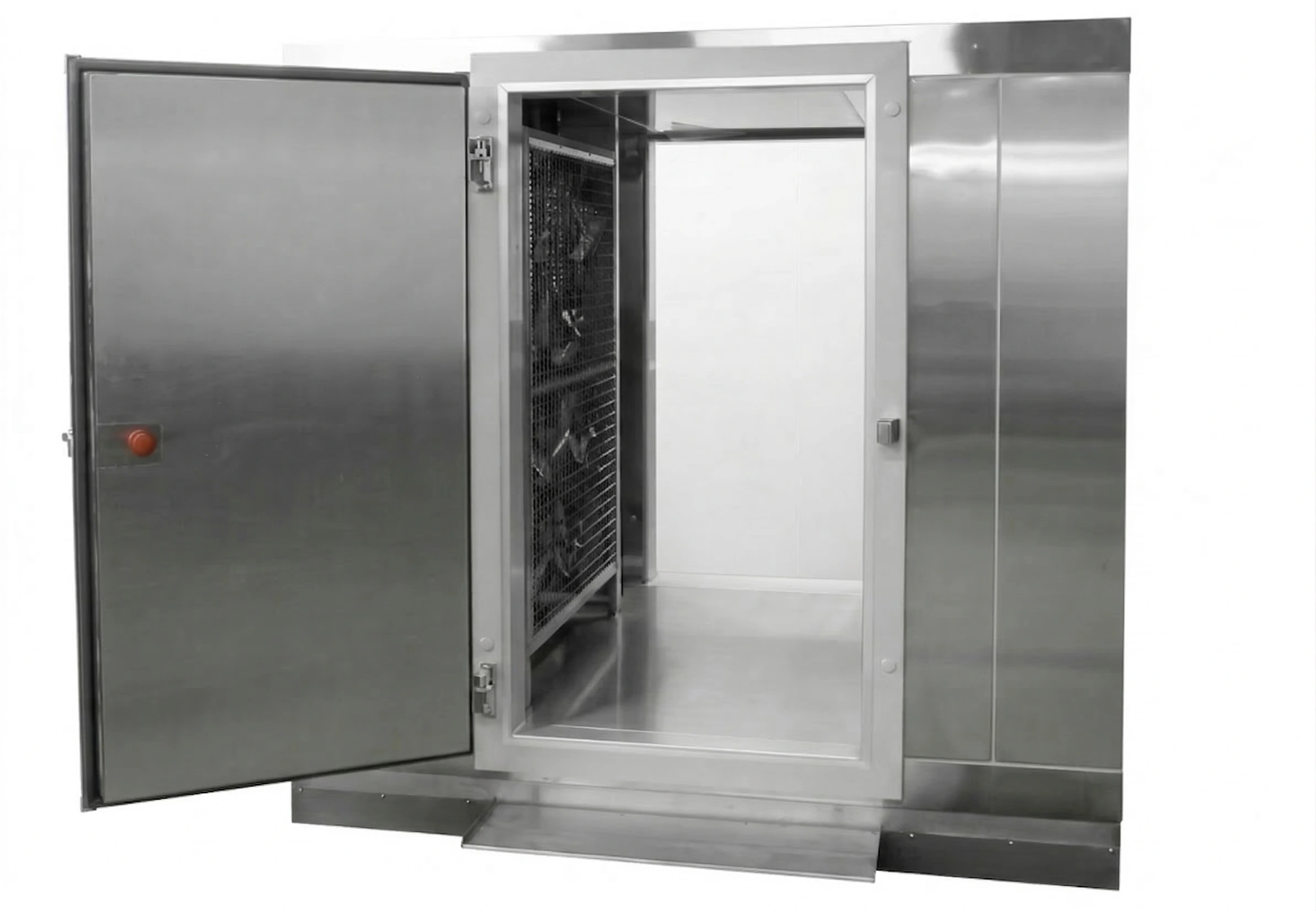 3Dフリーザーの急速冷凍庫内部。庫内の冷却フィンと高性能ファンを備えた業務用急速冷凍機。