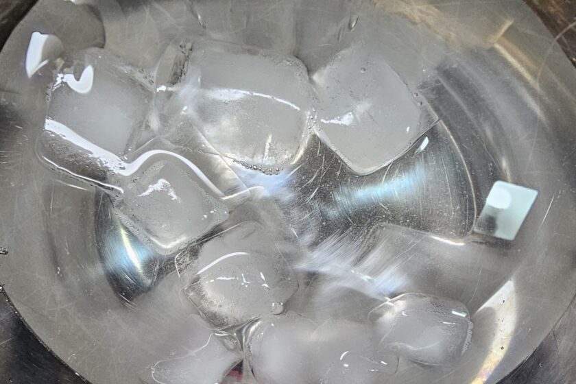 【方法】: 真空包装された食材を、氷水を張ったボウルやシンクに完全に沈めて解凍します。