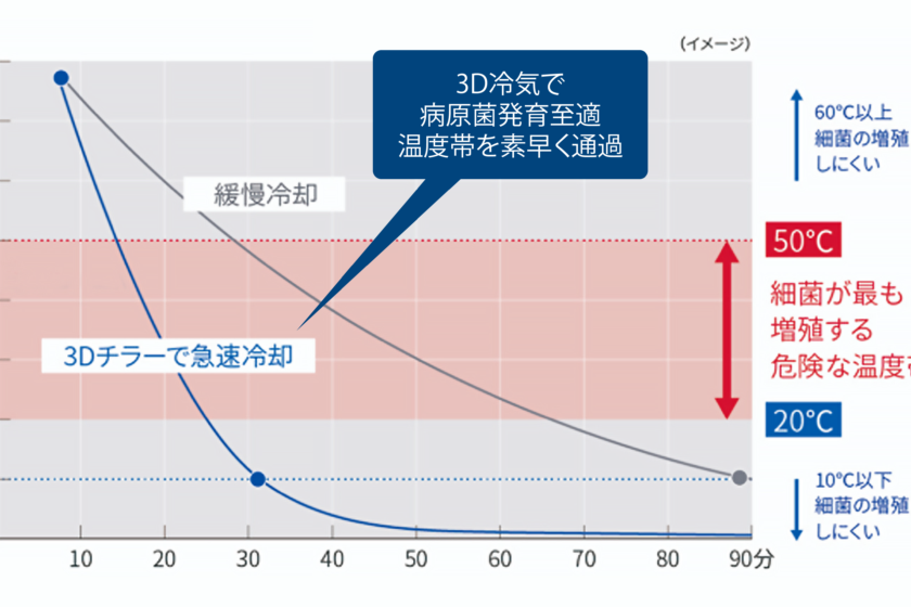 •急速冷却・冷凍の役割: この危険温度帯を素早く通過させ、細菌の増殖を抑制・停止させる。これがHACCPにおける最重要管理点(CCP)の一つとなる。