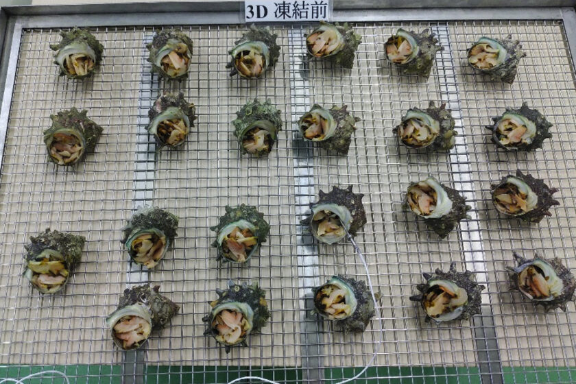 本記事は、3Dフリーザー(ラックインタイプ)でさざえを急速冷凍した郵送デモのレポートです。お客様から届いたサンプルを本社ショールームで試験し、手順・結果・ポイントを簡潔にまとめました。テスト後は冷凍便でサンプルをご返送しています。