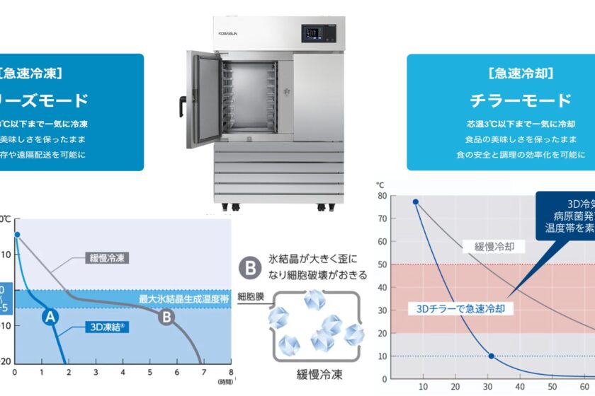 | 対象工程 | 凍結(保存・在庫化・出荷) | 加熱後や室温からの急冷(クックチル・仕込み) |