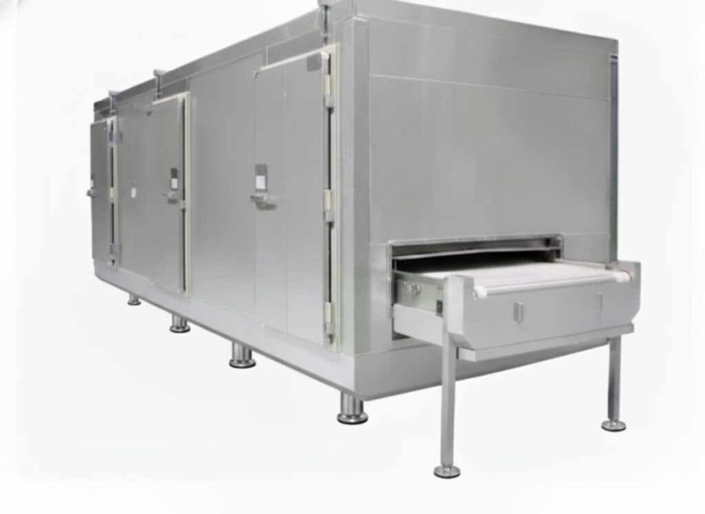 食品加工現場で導入されるトンネル型フリーザーは、処理する食品の種類やその形状、目標とする時間あたりの処理能力(kg/h)、設置できるスペースの制約、さらには既存の生産ラインとの連携方法など、多岐にわたる要求仕様に基づいて、その都度最適な設計が求められます。たとえば、厚みのある肉製品を処理する場合と、小粒のベリー類をバラ凍結する場合とでは、冷却方式、コンベアの種類、庫内の構造、さらには冷媒の種類まで、装置のあらゆる部分が大きく異なります。